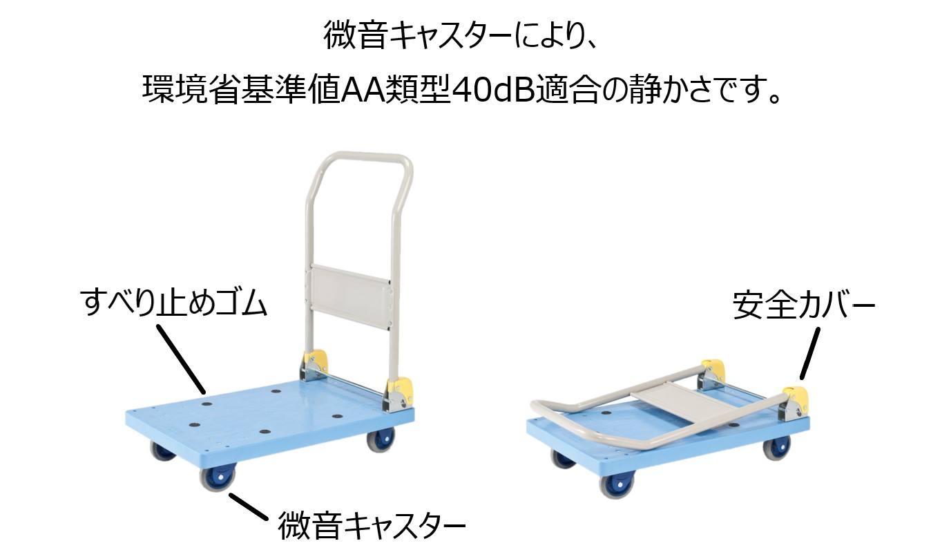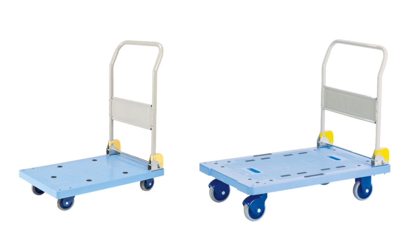折りたたみ式ハンドルで保管にスペースを取りません。ハンドルを折りたたむ際の金具の部分に、安全カバーが付いている為、怪我の防止になります。また、積載面に滑り止めゴムが付いているので安全に荷物を持ち運ぶことが可能です。