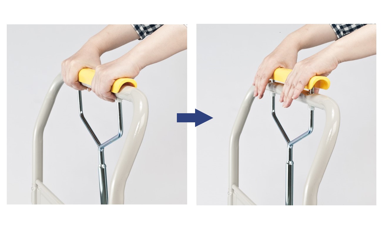 手元で簡単に操作ができるハンドブレーキ付です。ハンドルから手を離すだけでロックがかかるので、ブレーキのかけ忘れがありません。