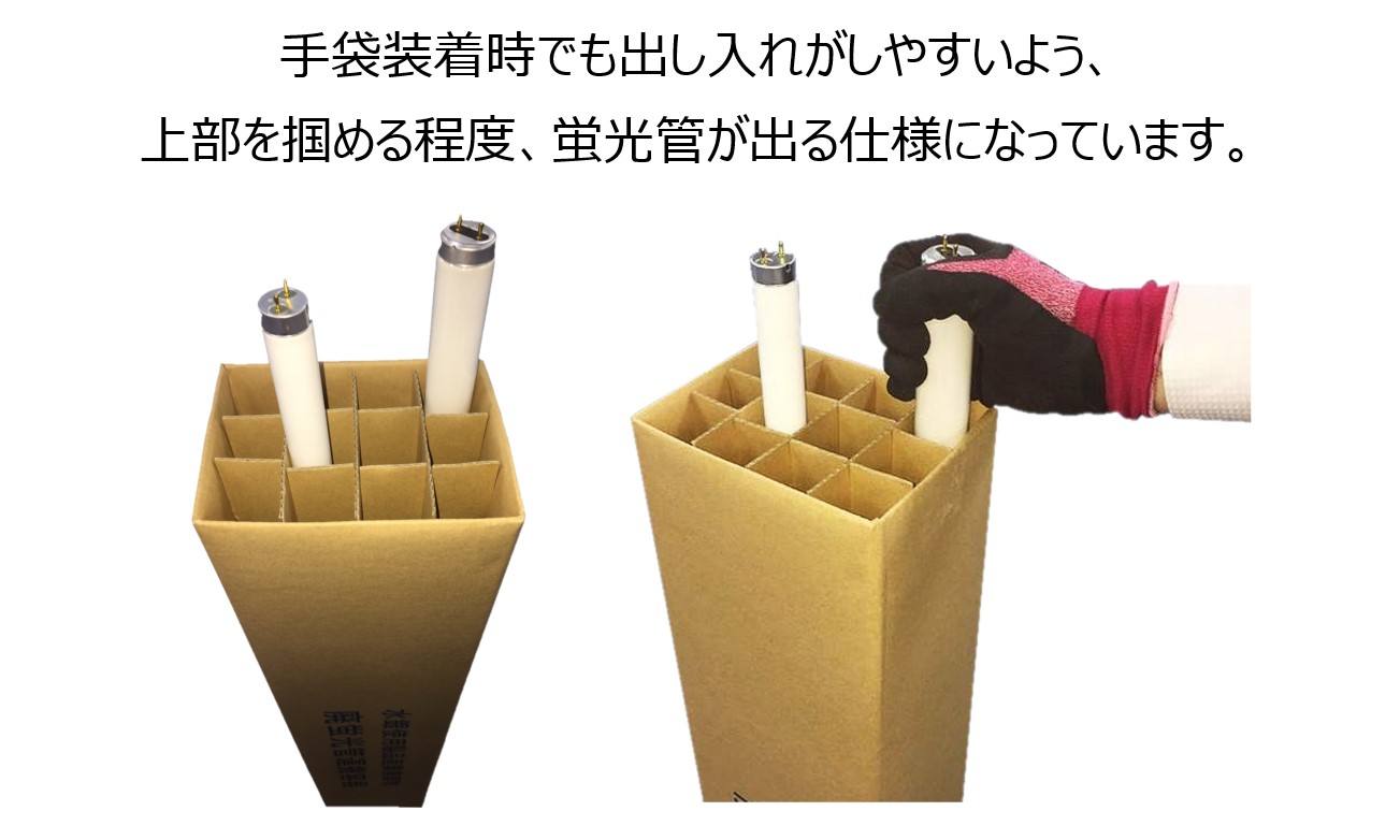 エコで安価な廃蛍光管運搬用ダンボール容器。