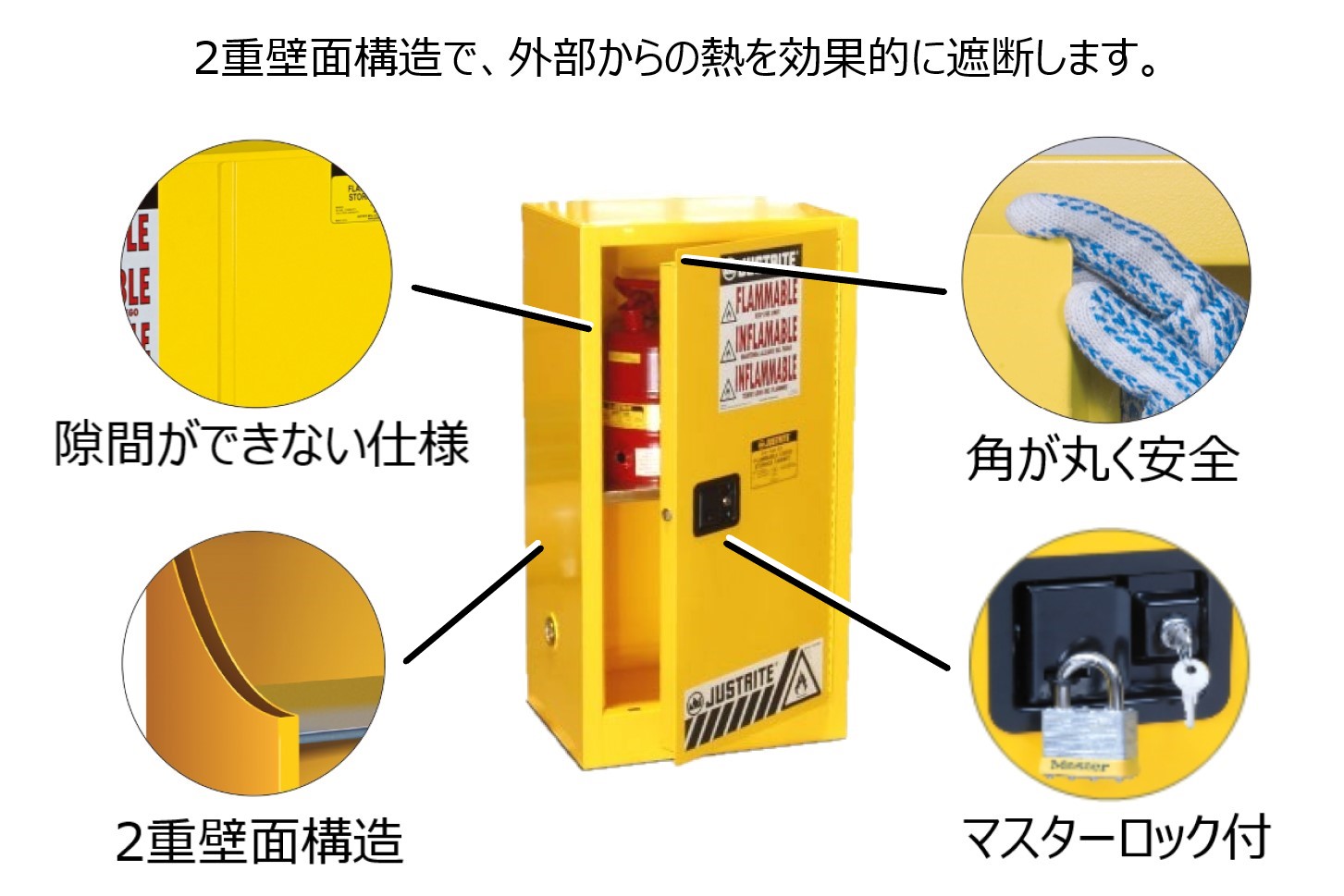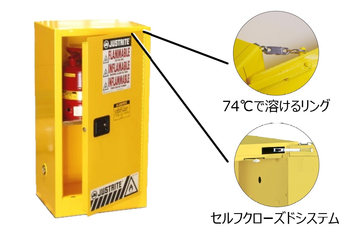 揮発性溶剤への引火を未然に防ぐ耐火キャビネット。