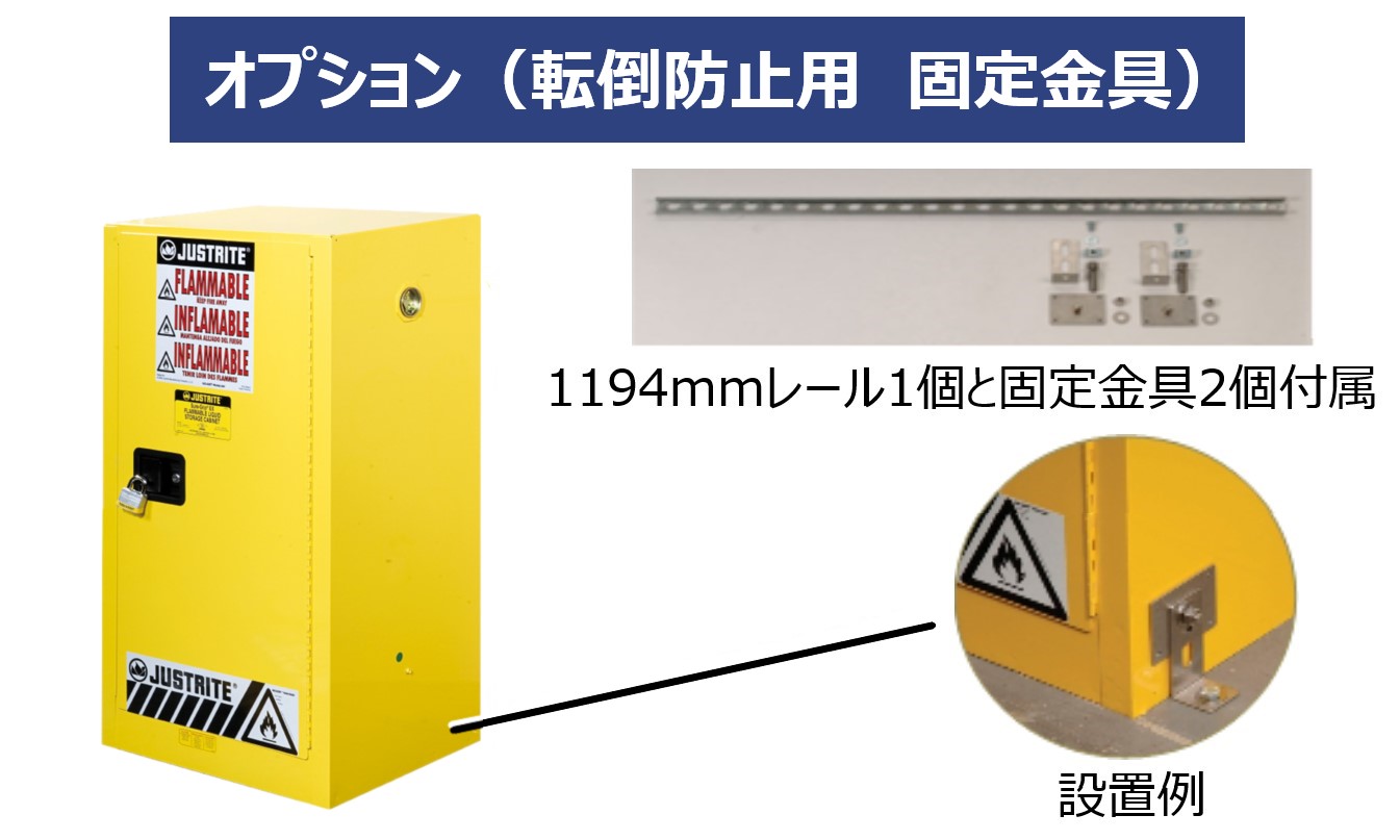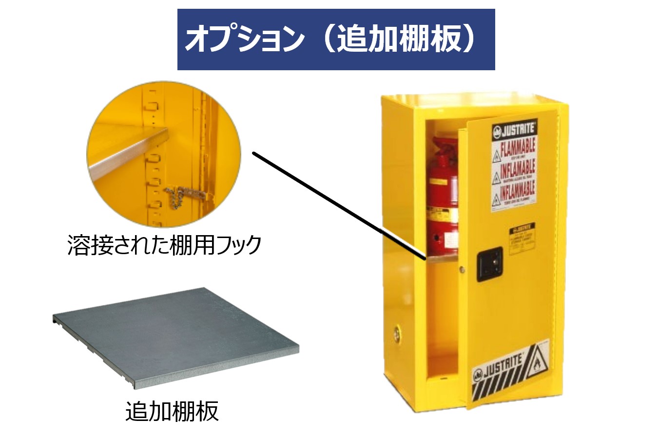| オプション | キャビネット用棚板 (縦35.6×横49.8cm) アースコード(丸型端子とクリップ端子の2種類からお選び頂けます。)長さ3m 南京錠(太さ9mm) セルフクローズタイプ用 融解リング 転倒防止用固定金具(L字留め具・留め具用レール) |