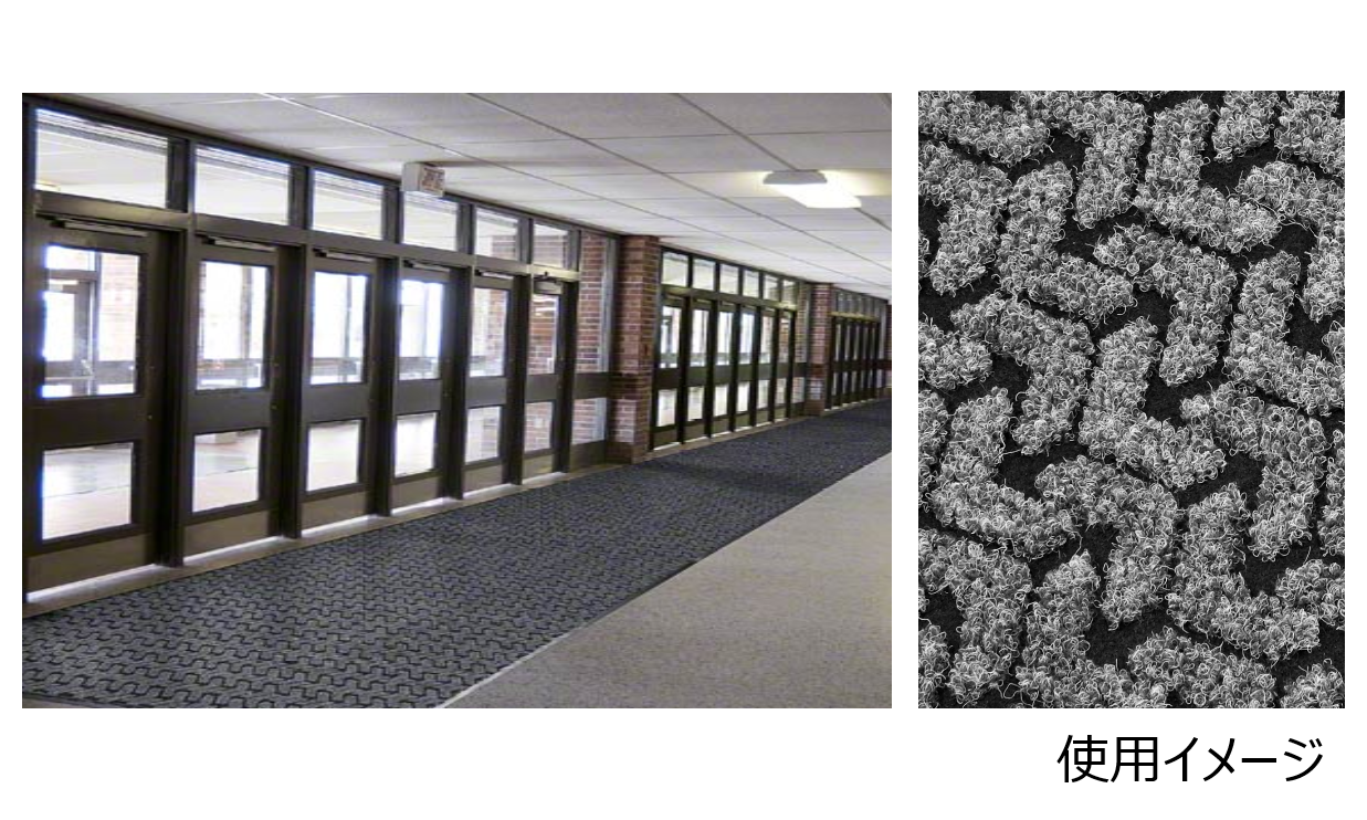 • 凹凸のあるマット表面は、靴底から土や砂、ホコリを取り除き、足元をしっかり確保します。耐摩耗性に優れ、台車やフォークリフトの往来する場所などでも使用できます。