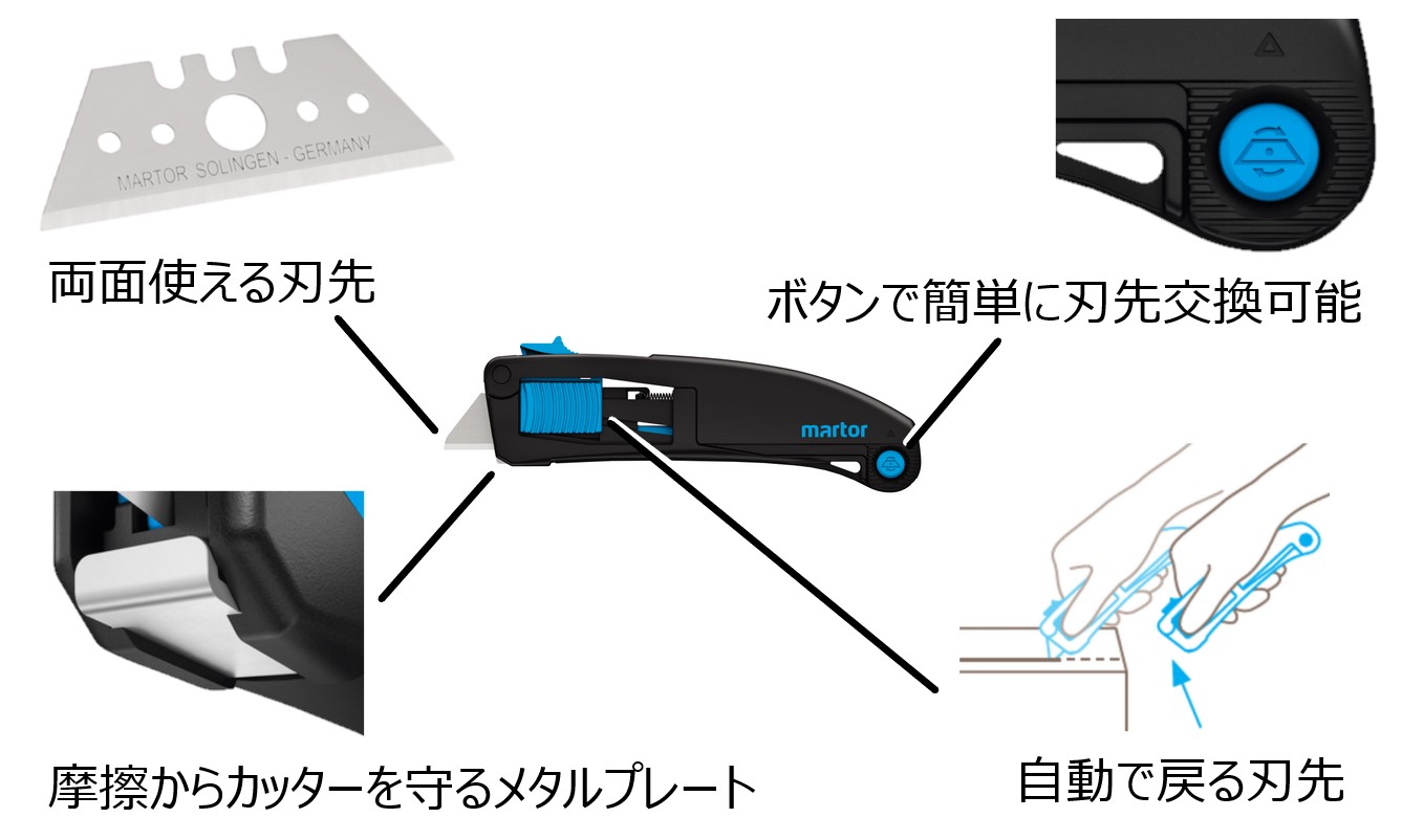 刃先の自動収納機能や、高品質グラスファイバー強化プラスチック製の丈夫なグリップで、使い易いデザインです。