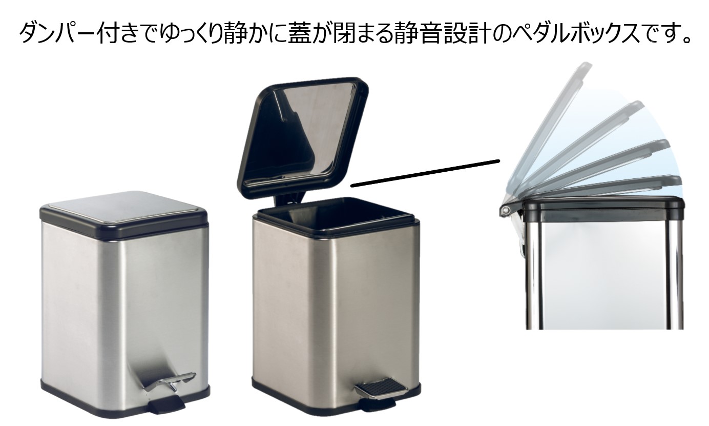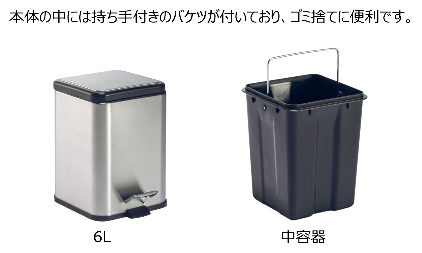 | ペダルボックス角型 6L | 【型番】DS-238-606-0 【外寸】W200×D270×H290mm 【重量】1.3kg 【材質】 本体:ステンレスヘアーライン仕上 ペダル・フレーム枠:ポリプロピレン 中容器:ポリプロピレン(再生樹脂) 【本体色】シルバー 【出荷単位】6個 【オプション】表示ラベル 【仕様】 中容器付 静音ダンパー付 |