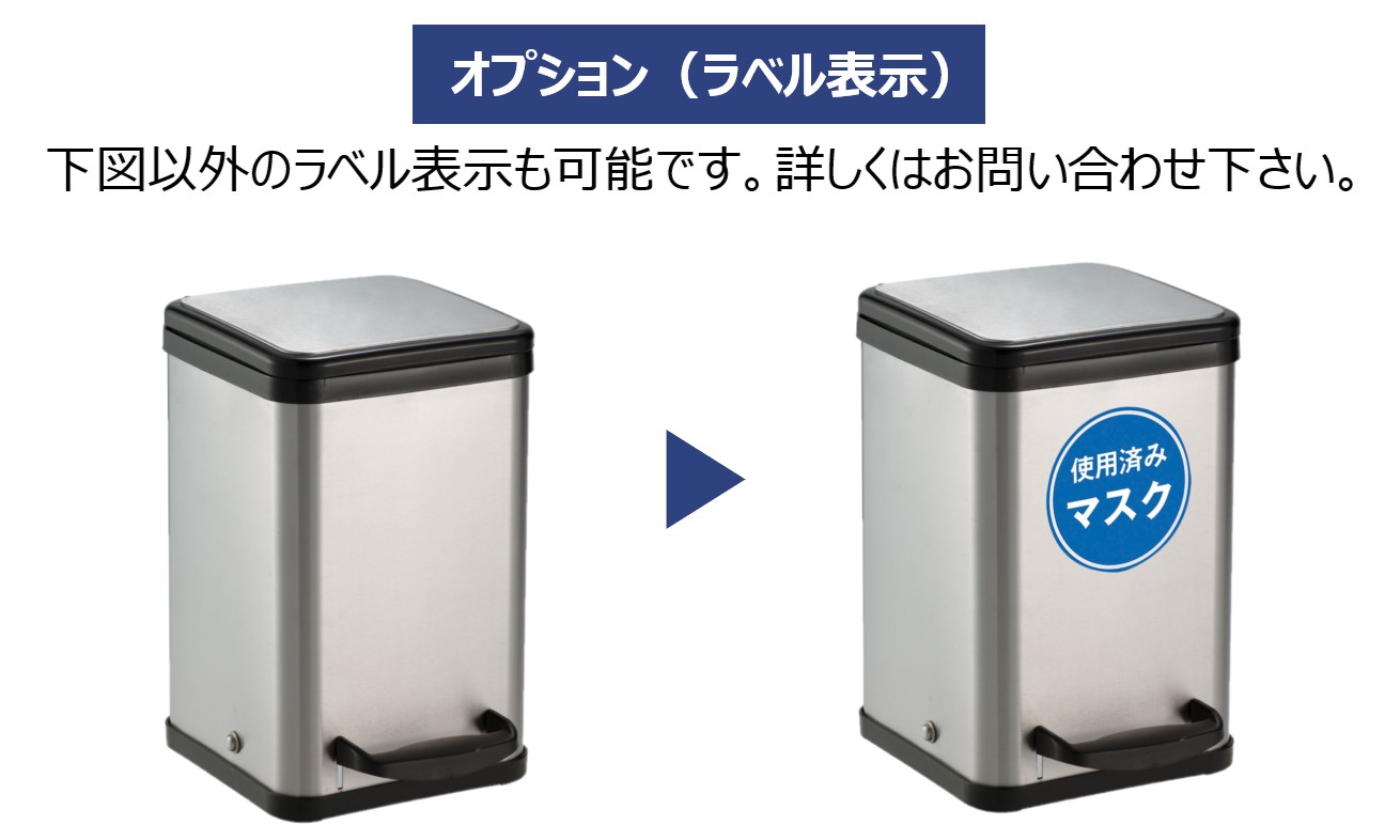 足踏み式なので、手を触れることなくゴミを廃棄できます。医療施設のマスクゴミや、商業施設の子ども用使用済みおむつの廃棄などに最適です。
