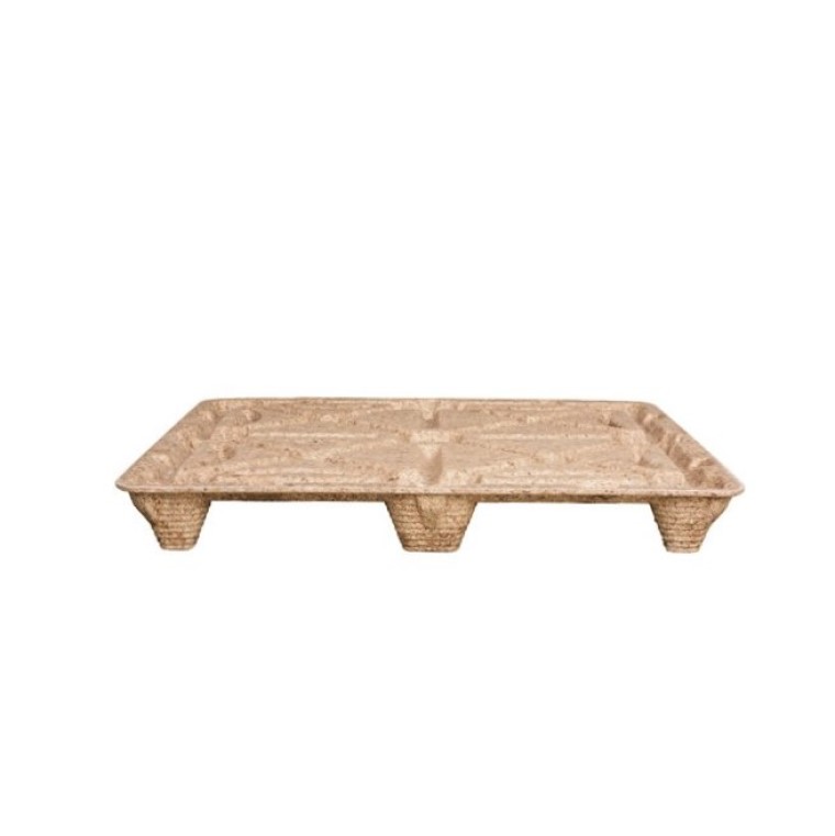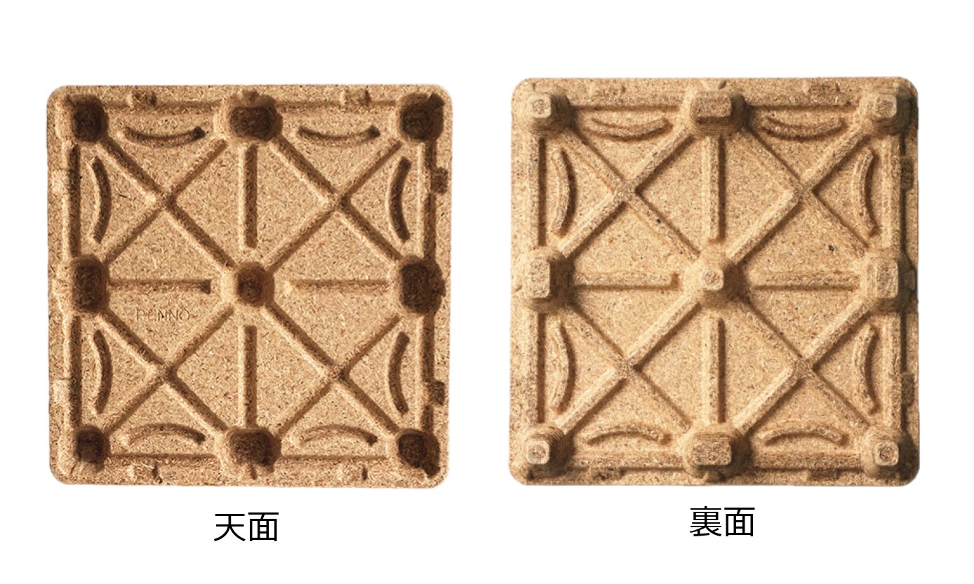 木材チップを圧縮し、使い捨てを前提とした主にワンウェイ輸送タイプのパレット。