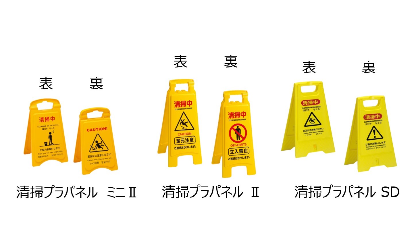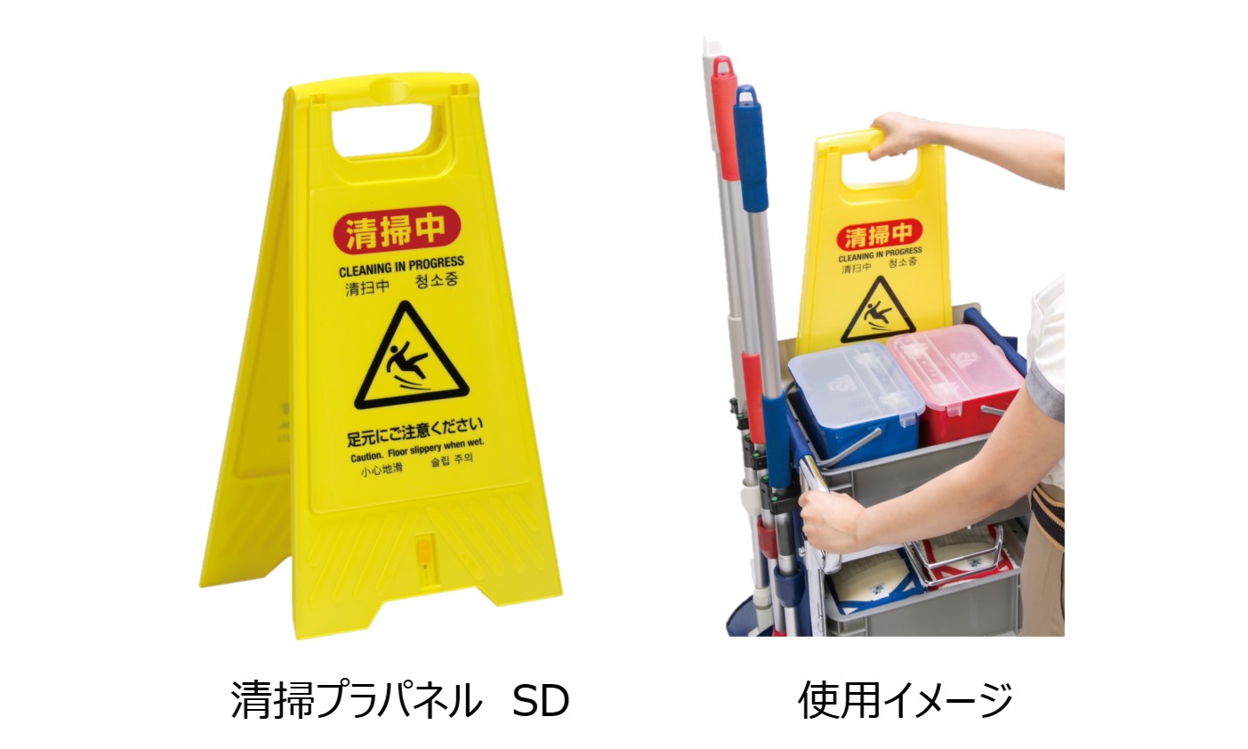 清掃などの案内や注意を促す、軽く持ち運びのしやすい清掃パネル。