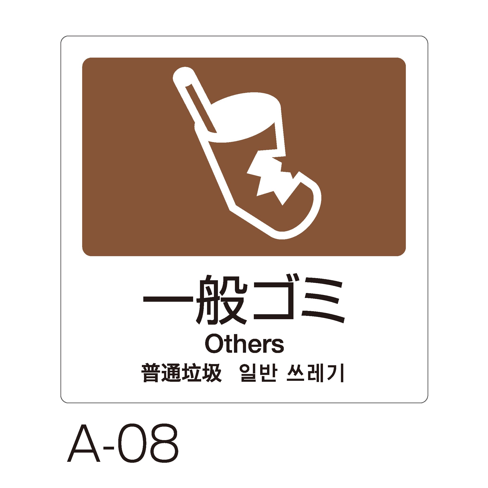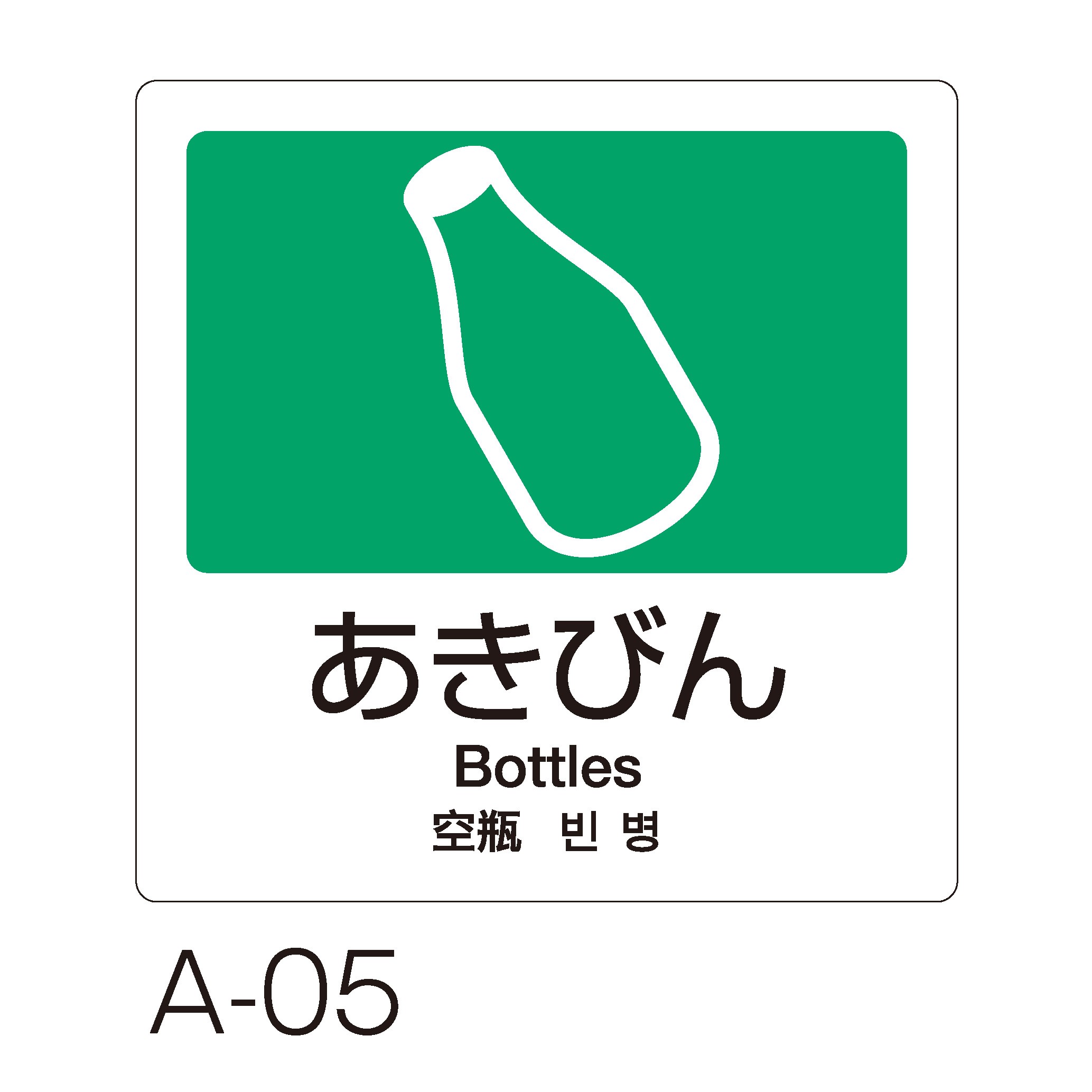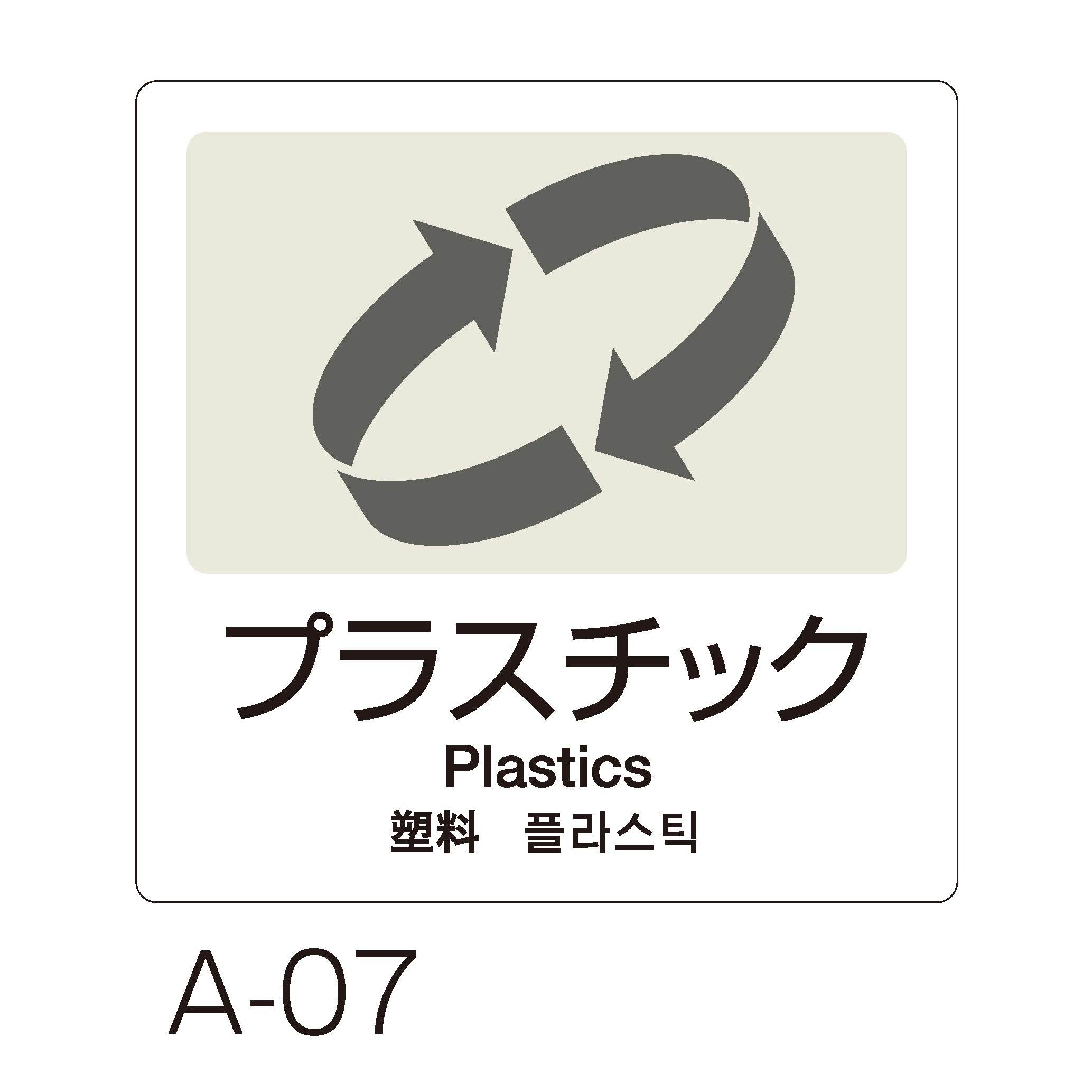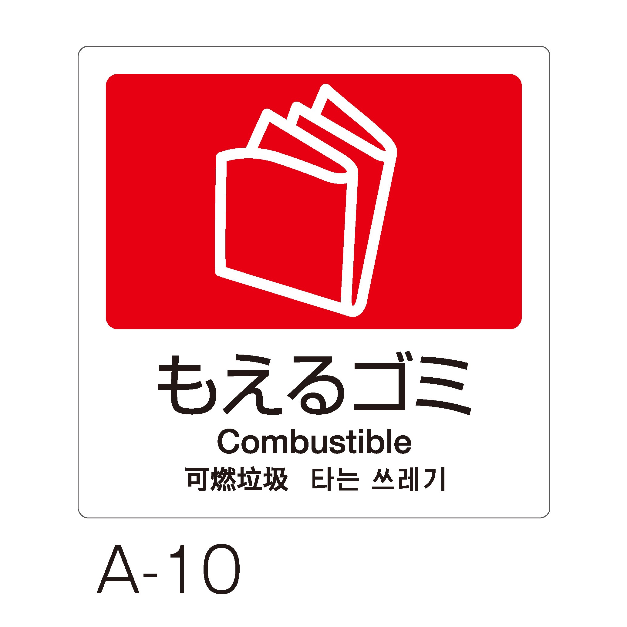 汚れにくいラミネート加工で屋内外で使用できる。4ヵ国語表記の分別ラベル。