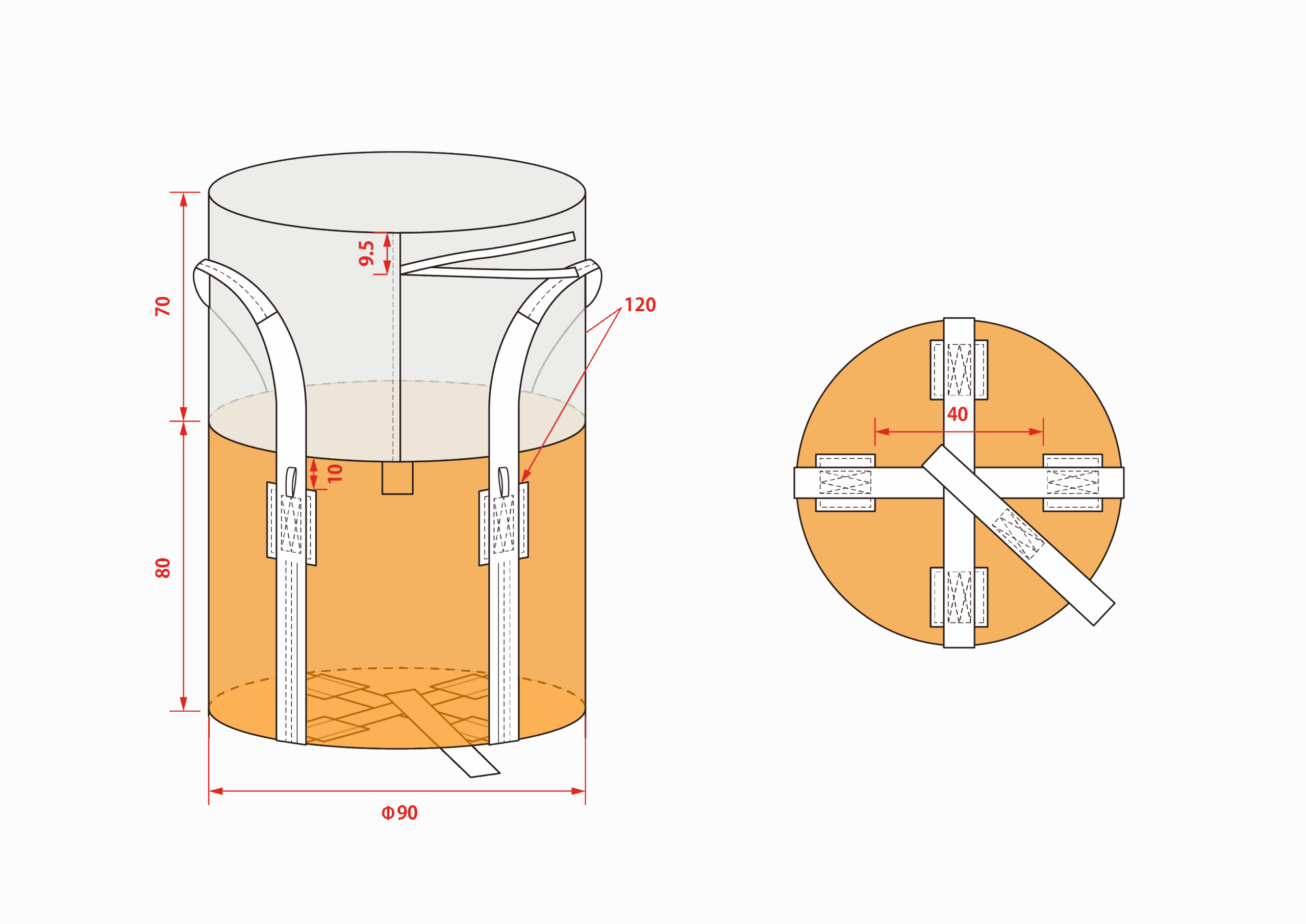• ・用途:産廃・建設 ・材質:PP ・500㎏用丸形、UVカット剤配合