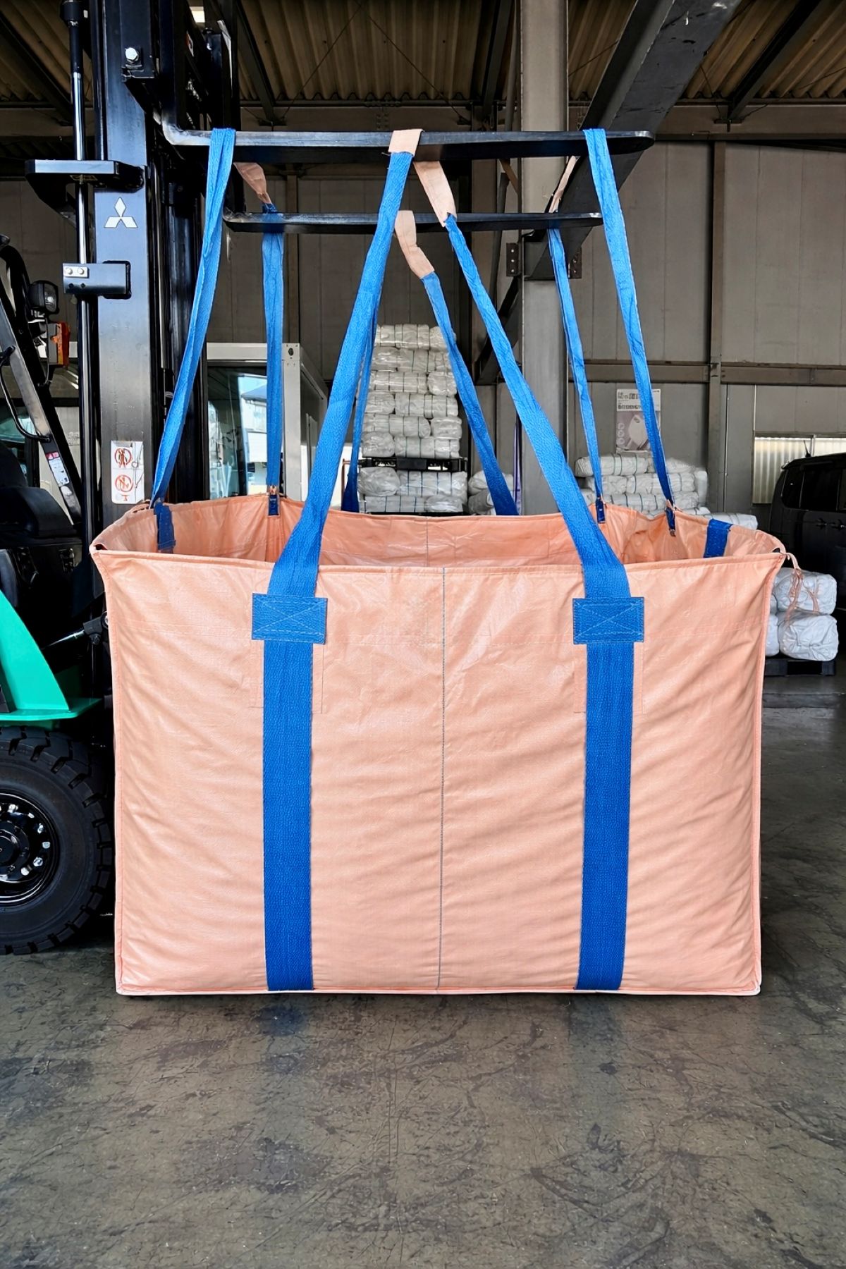 ●大容量 3㎥設計 大量の資材や廃材を一度に回収・運搬でき、作業効率を向上します。 ● 高強度PP生地 耐久性の高いポリプロピレン素材を使用し、現場でのハードな使用にも対応します。 ● 吊り上げ作業対応 4点吊りベルト仕様により、フォークリフトやクレーンで安全に運搬可能です。 ●カスタマイズ可能 用途に合わせて排出口や耐候性仕様などの変更が可能です。